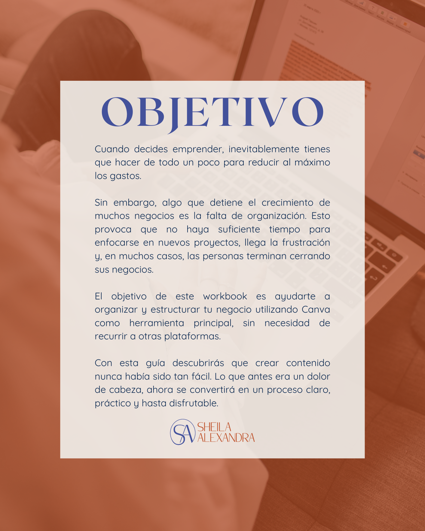 ¿Pierdes tiempo buscando diseños, ideas o plantillas cada vez que necesitas crear contenido? Este workbook digital fue diseñado para dueñas de negocio y emprendedores que desean optimizar su tiempo y organizar su marca dentro de Canva de una manera práctica y estratégica.